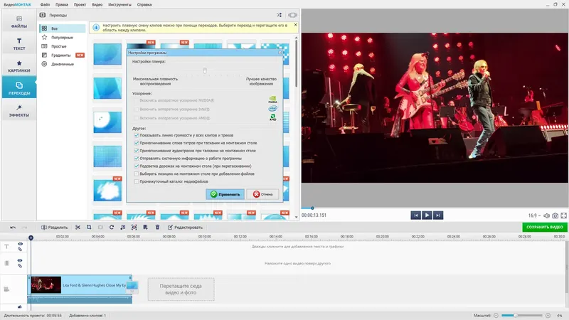 - Высокое качество итогового видео и возможность создания Full HD роликов