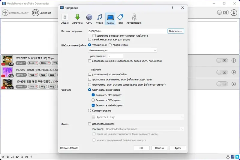 - Поддержка популярных форматов AVI, MP4, MKV, MOV, WMV, FLV и других