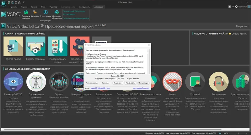 Для скачивания VSDC Video Editor на русском языке достаточно перейти на официальный сайт и выбрать нужную версию. Программа доступна для бесплатного скачивания с возможностью получения pro-версии по ключу или покупке лицензии. После установки потребуется активировать программу, чтобы воспользоваться полным набором профессиональных функций и инструментов.
