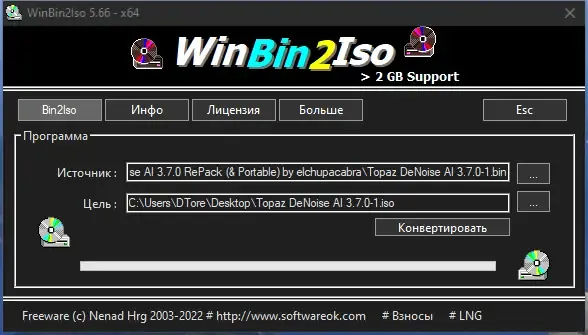 - Быстрое преобразование BIN в ISO