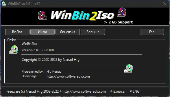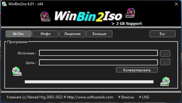 WinBin2Iso — это небольшая, но мощная программа, разработанная компанией Nenad Hrg, которая позволяет пользователям легко конвертировать образы дисков из формата BIN в ISO. Ее основное преимущество заключается в простоте интерфейса и возможности обработки больших файлов, объемом более 2 ГБ. Утилита не требует установки и занимает минимум системных ресурсов, что делает ее особенно удобной для быстрого выполнения задач по преобразованию образов.