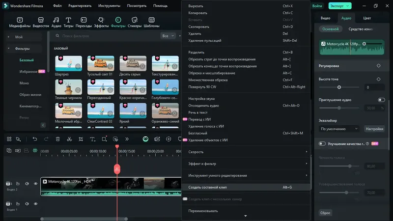 Использование искусственного интеллекта и богатых ресурсов делает Filmora мощным инструментом для видеомонтажа.
