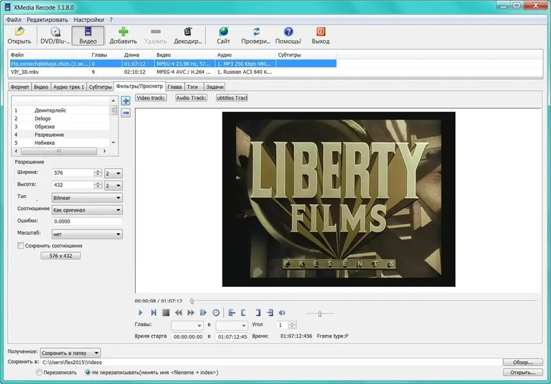 - Поддержка 2х-проходного кодирования и функции прямой копии потока, что обеспечивает высокое качество и быструю обработку.