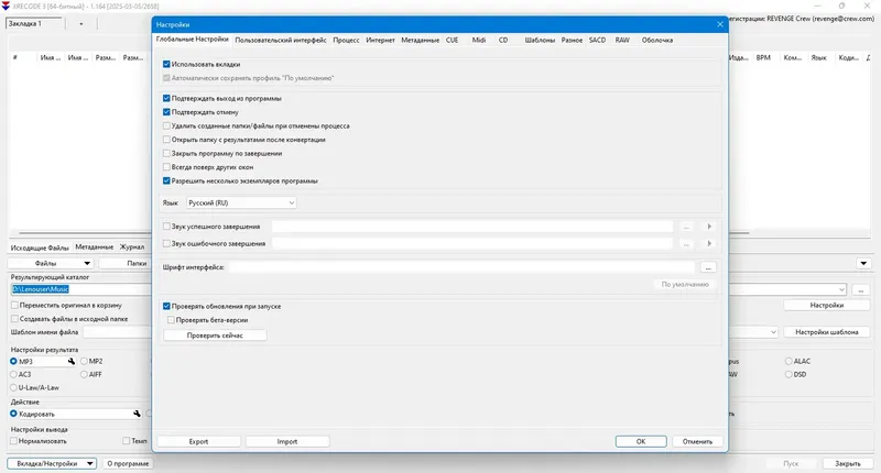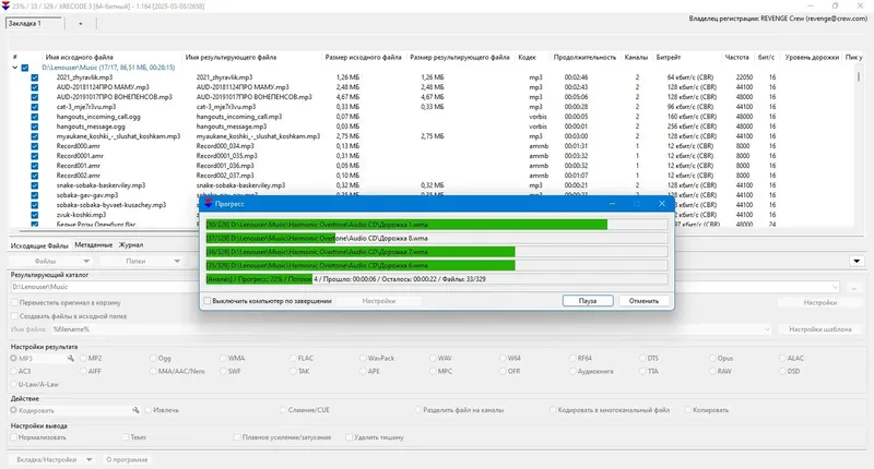 XRecode 3 — это универсальный аудиоконвертер, который поддерживает работу под Windows и Wine, что обеспечивает широкую совместимость с различными системами. Он позволяет быстро и без усилий конвертировать файлы из форматов mp3, flac, wav, а также из видеоформатов avi, mkv и mov в другие популярные форматы, такие как m4a, ogg, aac и многие другие. Встроенная обработка многоканальных аудиодорожек, извлечение звука из видео и создание объединённых аудиофайлов делают его универсальным инструментом для обработки мультимедиа. Возможность параллельного конвертирования нескольких файлов значительно ускоряет работу и позволяет одновременно обрабатывать большие объёмы данных. Эта программа отлично подходит для профессионалов и любителей, которым важна высокая скорость и качество преобразования аудио.