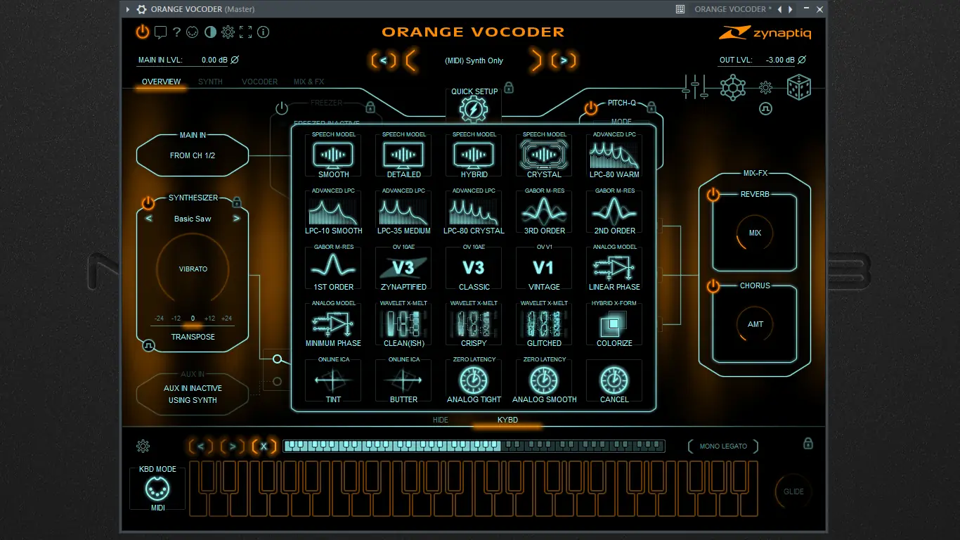 Zynaptiq Orange Vocoder — это универсальный вокодер, объединяющий передовые алгоритмы анализа и синтеза звука. В основе его работы лежит множество технологий, включая моделирование аналогового оборудования, LPC-фильтрацию, анализ независимых компонентов и волновые преобразования. Благодаря этому плагин способен создавать как традиционные, так и экспериментальные звуковые эффекты, что делает его незаменимым в студийной работе и живых выступлениях. Его интерфейс позволяет легко управлять множеством параметров, обеспечивая гибкость и точность обработки аудио.