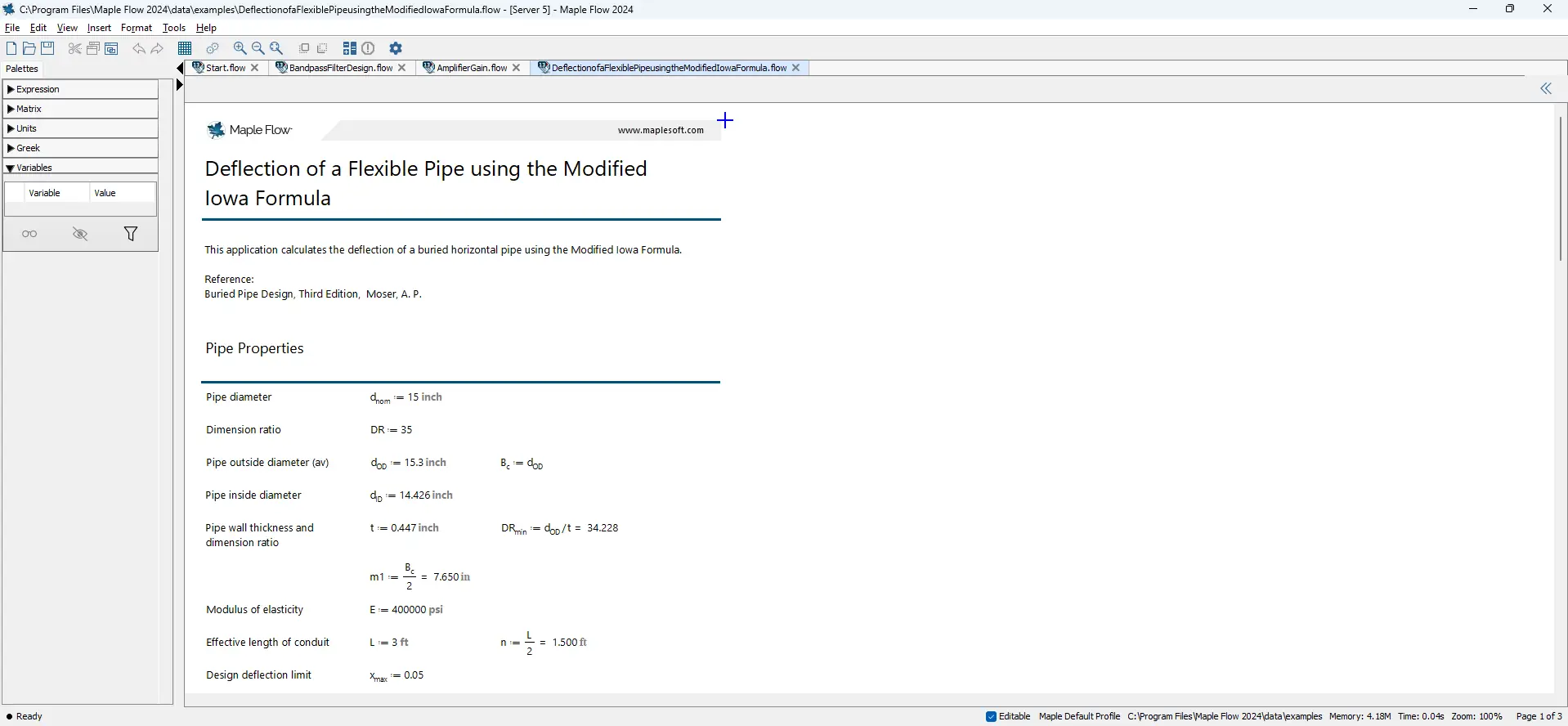 Maplesoft Maple Flow обеспечивает комфортную работу с математическими формулами и графиками, что делает его незаменимым инструментом в инженерных расчетах.