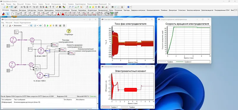 SimInTech представляет собой систему автоматизированного проектирования, которая позволяет исследовать динамику нестационарных процессов в различных технических областях. Она поддерживает моделирование систем с входо-выходными отношениями, реализованное через дифференциальные уравнения или расчетные схемы, что обеспечивает высокую точность и гибкость при анализе. В среде можно создавать графики, управлять блоками и настраивать параметры модели для получения детальных результатов моделирования.