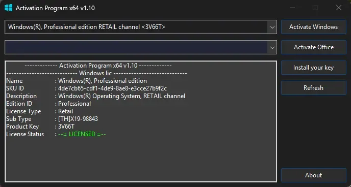 Activation Program — это мощное офлайн-решение для изменения записи о лицензии Windows и некоторых продуктов Microsoft, позволяющее активировать системы без подключения к интернету. Программа предназначена для пользователей, которым необходим быстрый и надежный способ подтвердить легальность своей операционной системы, особенно в случаях, когда стандартные методы активации недоступны или вызывают сложности. Благодаря встроенным методам и инструментам, Activation Program обеспечивает долговременную активацию и возможность сброса состояния лицензии.