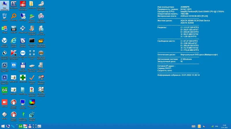 AdminPE — это загрузочный диск системного администратора, основанный на WinPE5 (Win8.1), предназначенный для работы с автономной Windows 8.1. Он позволяет создавать загрузочные флешки и диски для диагностики, восстановления и установки операционных систем. Программа включает широкий набор инструментов для работы с файлами, резервного копирования, восстановления, тестирования оборудования и работы с различными файловыми системами, поддерживая загрузку в UEFI и BIOS. Скачать этот загрузочный диск можно на странице для быстрого и удобного системного администрирования.