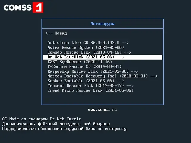 COMSS Boot USB — это универсальный загрузочный диск, который включает в себя 11 антивирусных сканеров, утилиты для диагностики жестких дисков и оперативной памяти, а также инструменты для работы с разделами диска и получения информации о системе. Благодаря поддержке режимов UEFI и Legacy, он совместим с большинством современных и устаревших компьютеров. Обновленная версия 2021 года расширяет функциональность, добавляя новые средства и улучшая совместимость с современными системами.