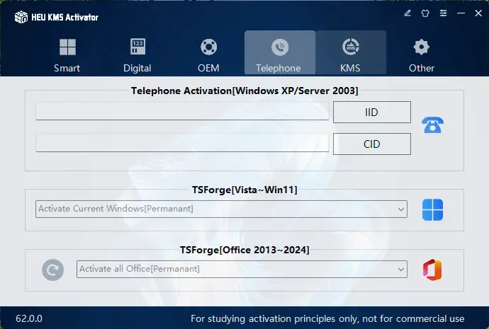 HEU KMS Activator — это мощное и простое в использовании средство активации Windows и Office, которое автоматически определяет оптимальный способ активации и предлагает выбор между четырьмя режимами: цифровая лицензия, KMS38, OEM и KMS. Программа поддерживает активацию широкого спектра версий операционных систем, начиная с Windows XP и заканчивая Windows 11, а также различных версий офисных пакетов, включая Office 365 и Office 2024. Она обладает множеством дополнительных инструментов для изменения версий, резервного копирования и восстановления системы, а также управления ключами.