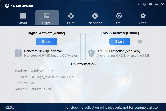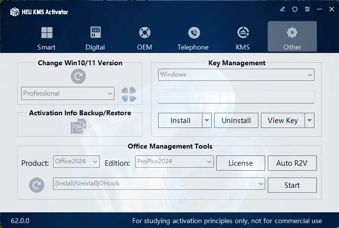 HEU KMS Activator — это универсальное программное обеспечение для активации операционных систем Windows и офисных приложений Microsoft. Оно позволяет пользователям легко и быстро активировать Windows 10, 11 и Office 2024 в один клик, выбирая наиболее подходящий режим активации. Благодаря удобному интерфейсу и множеству функций, программа подходит как для профессиональных IT-специалистов, так и для обычных пользователей, желающих легально использовать продукты Microsoft.