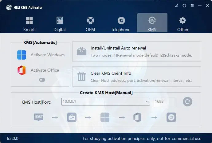 HEU KMS Activator — это универсальное программное обеспечение для активации операционных систем Windows и офисных пакетов Microsoft Office. Благодаря простому интерфейсу и нескольким режимам активации, оно позволяет пользователям быстро и безопасно активировать свои продукты в один клик, обходя необходимость приобретения лицензий. Поддержка различных версий Windows и Office делает его популярным инструментом как для индивидуальных пользователей, так и для предприятий.