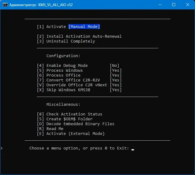 Этот пакетный скрипт предназначен для автоматизации процесса активации операционных систем и офисных приложений с поддержкой различных редакций Windows и Office. Основная особенность — возможность круглосуточной активации без необходимости ручного вмешательства, что особенно удобно для системных администраторов и тех, кто хочет обеспечить стабильную работу программного обеспечения. Встроенный локальный эмулятор KMS позволяет снизить риск блокировки со стороны антивирусных программ, а также обеспечивает быстрый и надежный процесс активации.