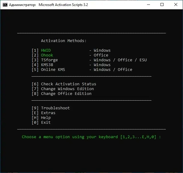Microsoft Activation Scripts — это мощный и универсальный активатор для Windows и Office, основанный на использовании методов HWID, Ohook, KMS38, OnlineKMS и TSforge. Благодаря открытому исходному коду и оптимизации, программа обеспечивает надежную активацию с меньшим количеством обнаружений антивирусными системами. Подходит для пользователей, ищущих эффективные решения для легальной активации программного обеспечения Microsoft.