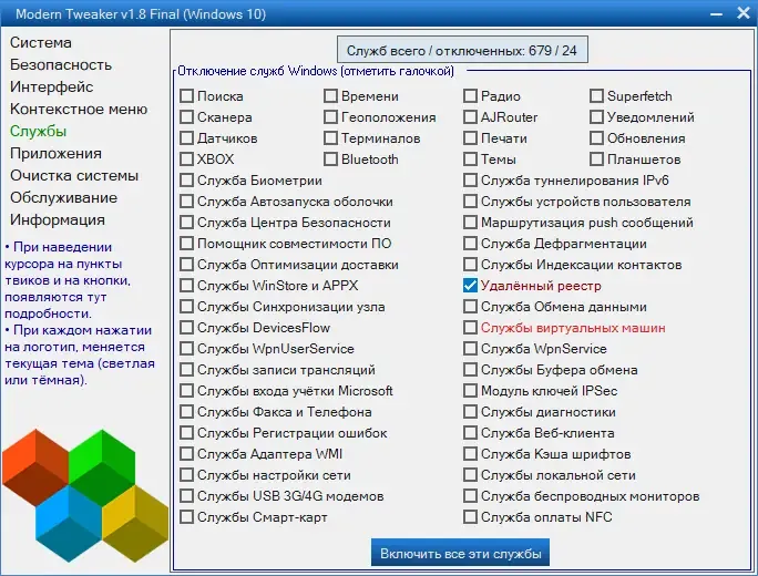 - Меньшее потребление оперативной памяти и места на диске за счет отсутствия стандартных Metro-приложений