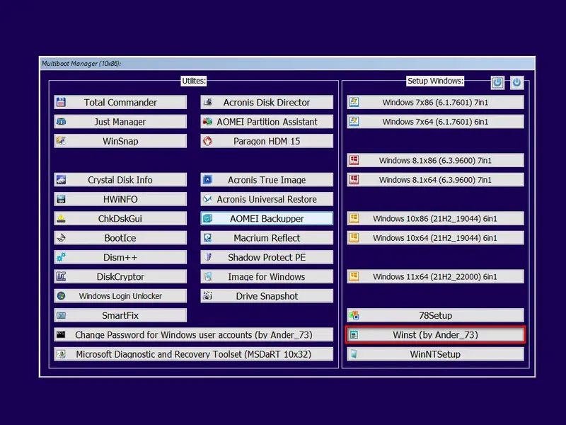 Данный мультизагрузочный сборник включает в себя полный набор инструментов для установки различных версий Windows 7-11, а также утилиты для восстановления, диагностики и работы с образами. В сборнике предусмотрена возможность обновления и замены компонентов без риска нарушения целостности данных. Все папки и файлы структурированы таким образом, что удаление или обновление любой сборки не влияет на работоспособность остальных. Это достигается за счет использования отдельных папок, каждая из которых прописана в основном меню, что позволяет легко обновлять или удалять отдельные компоненты.