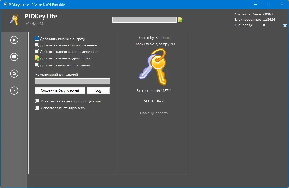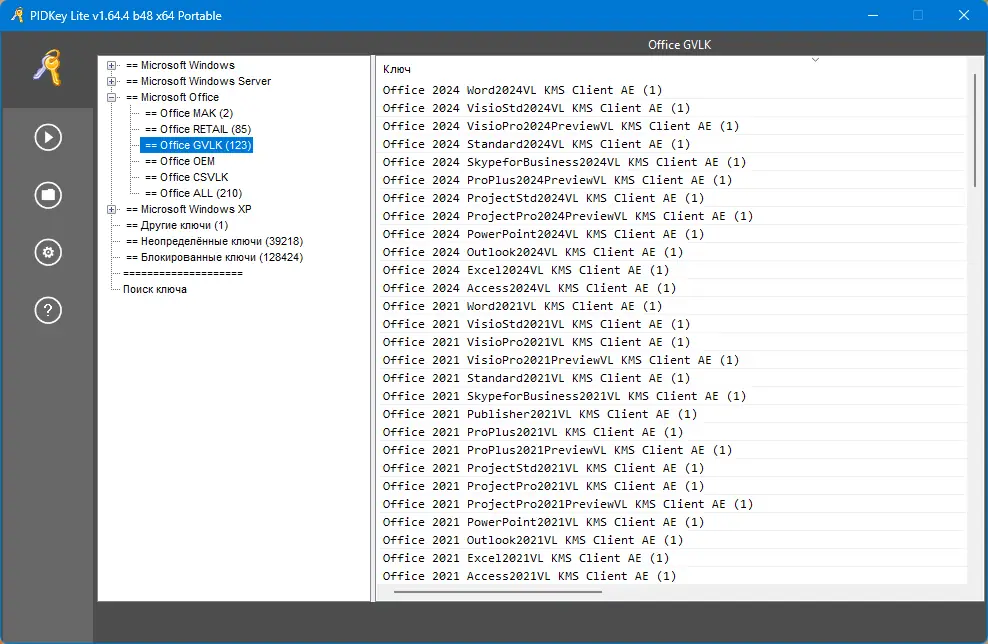 PIDKey Lite предназначена для быстрого и эффективного управления ключами продуктов Microsoft, включая Windows и Office. В отличие от своих предшественников, программа создает полноценную SQL-базу данных, что обеспечивает более надежное хранение и быстрый доступ к информации. Она позволяет не только просматривать и проверять ключи, но и обновлять их, а также блокировать ненужные или подозрительные лицензии. Благодаря простому интерфейсу и расширенной функциональности, PIDKey Lite значительно упрощает работу с ключами и снижает риск ошибок при активации.