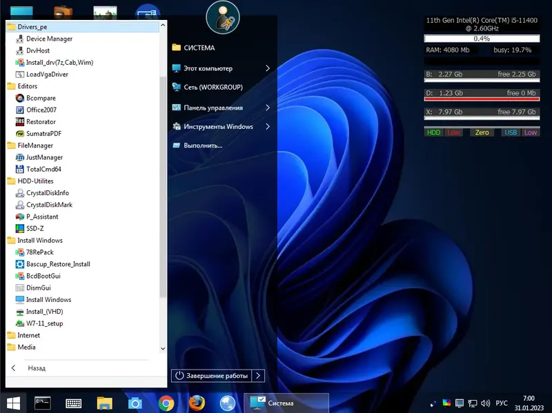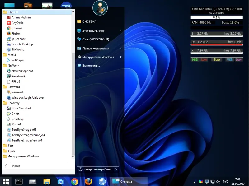 Программное обеспечение Windows представляет собой загрузочный диск на базе Windows 10/11 PE, предназначенный для обслуживания компьютеров. Он включает инструменты для работы с жесткими дисками, разделами, резервного копирования и восстановления данных, диагностики системы и восстановления информации. Такой образ системы идеально подходит для специалистов и пользователей, которым необходим быстрый доступ к важным утилитам без полной установки операционной системы.