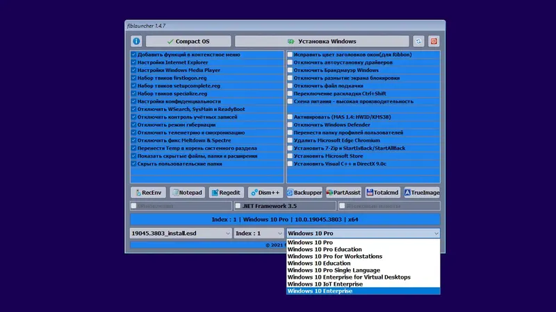 - Возможность выбора и установки дополнительных программ и твиков.