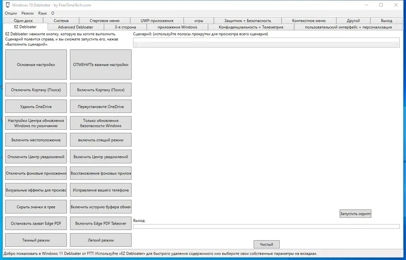 Windows 10 Debloater — это удобная и легкая в использовании утилита для настройки операционной системы Windows 10. Она позволяет отключить ненужные службы, удалить встроенные приложения, настроить параметры конфиденциальности и скрыть иконки для повышения производительности и безопасности системы. Программа подходит для пользователей, желающих оптимизировать работу Windows 10 без сложных ручных настроек.