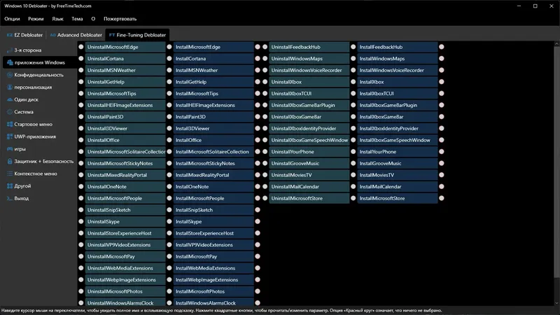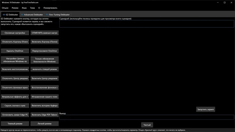 Windows 10 Debloater — это мощный инструмент для настройки и оптимизации операционной системы Windows 10. Он позволяет отключать ненужные службы, удалять встроенные приложения и скрывать различные элементы интерфейса, что способствует повышению скорости работы и снижению использования ресурсов. Программа подходит для тех, кто хочет максимально персонализировать свою систему и обеспечить безопасность данных.