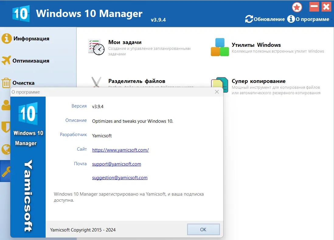 Windows 10 Manager — это универсальный инструмент для оптимизации, настройки и повышения безопасности операционной системы Windows 10. Он включает более сорока различных утилит, которые позволяют ускорить работу системы, устранить неисправности и персонализировать интерфейс. Программа подходит как для опытных пользователей, так и для новичков, обеспечивая простое управление системой и её компонентами.