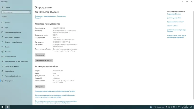 - Встроенная защита Windows Defender с возможностью включения