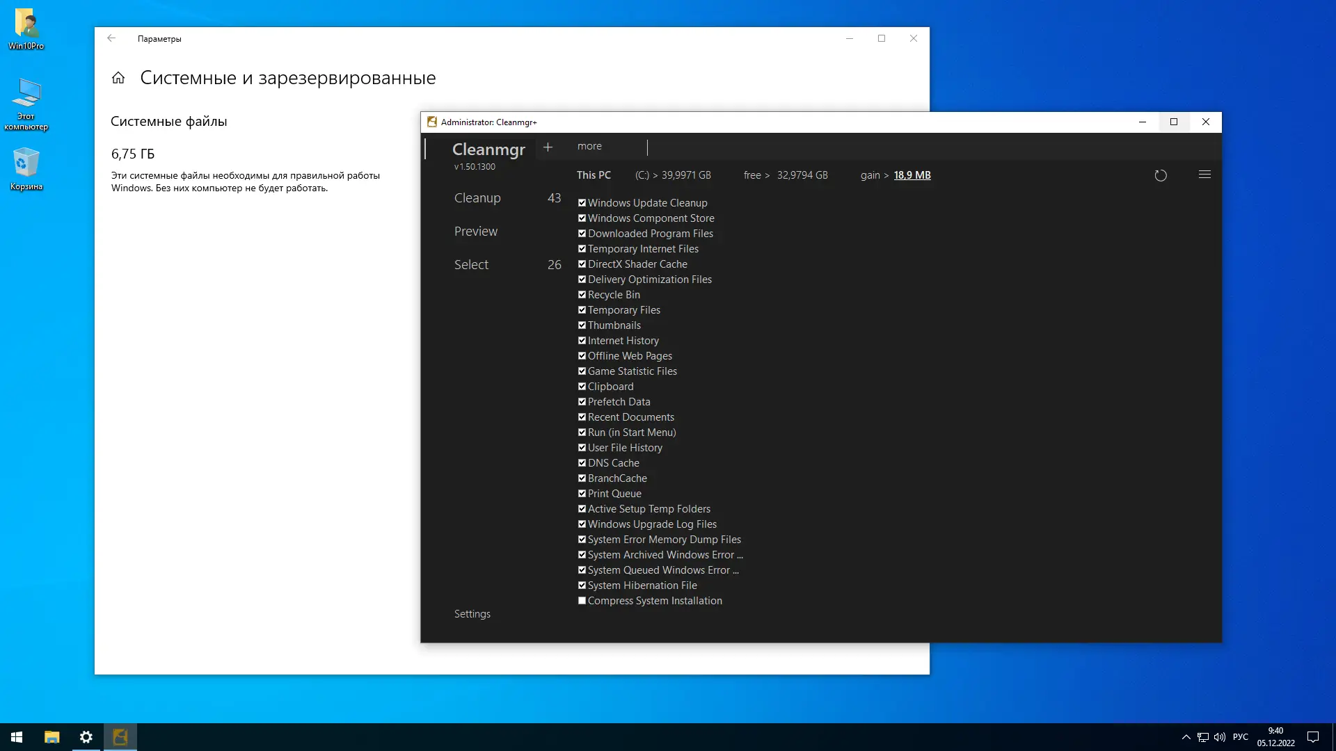 - Включены популярные инструменты для очистки системы и освобождения места.
