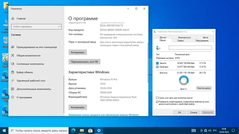 Эта сборка операционной системы Windows 10 создана на основе официального образа от MSDN, обновленного в апреле 2024 года. В ней отключены некоторые компоненты, задействован протокол SMB, интегрирован современный .NET Framework, выполнена оптимизация и очистка системы для повышения скорости и стабильности. Образ упакован в формат esd, что обеспечивает меньший размер и быструю установку. Такой вариант подходит для тех, кто ищет максимально оптимизированную и безопасную ОС для компьютера.