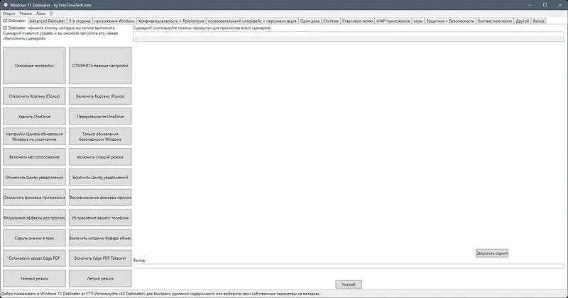 Windows 11 Debloater — это бесплатное программное обеспечение с открытым исходным кодом, созданное на базе популярных скриптов от Chris Titus Tech и farag2. Эта утилита предназначена для тонкой настройки операционной системы Windows 11, а также совместима с Windows 10 и даже с более старыми версиями. Она позволяет отключить телеметрию, удалить предустановленные приложения, такие как Microsoft Edge, OneDrive и Cortana, а также скрыть различные иконки и элементы интерфейса. Программа обладает графическим интерфейсом, что делает её доступной даже для пользователей без глубоких знаний в области командной строки. Также она поддерживает портативный режим, что удобно для быстрого использования без установки.
