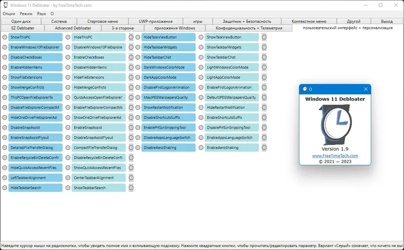 Debloater обеспечивает универсальную настройку Windows 11, делая систему более легкой и безопасной для использования.