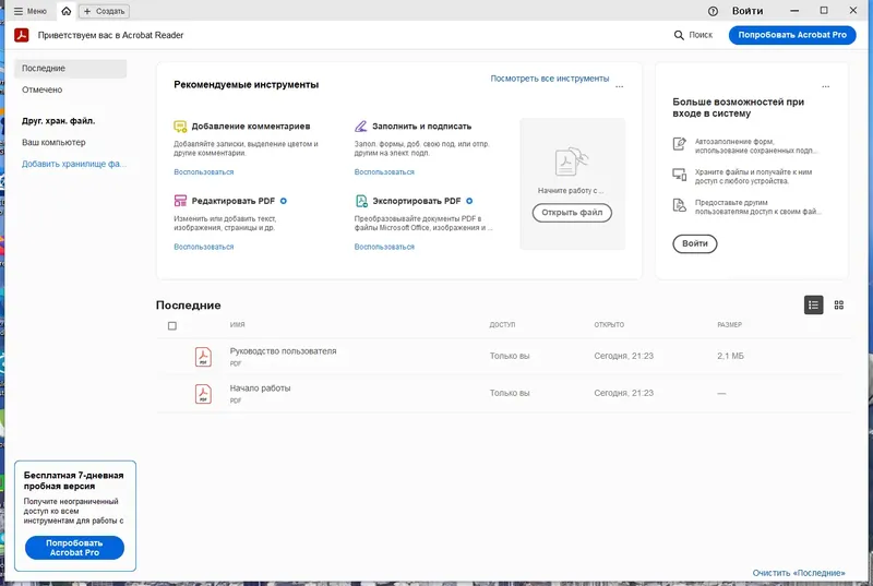 Adobe Acrobat Reader — это универсальный читалка PDF, которая позволяет открывать и просматривать документы высокого качества. Помимо стандартных функций, программа предлагает инструменты для аннотирования, редактирования и подписания файлов без необходимости приобретения платной версии. Благодаря интеграции с Adobe Document Cloud, пользователь может легко скачивать и сохранять документы, а также работать с ними на различных устройствах, включая смартфоны, планшеты и компьютеры. Программа поддерживает работу в русской версии, что делает её особенно удобной для пользователей из России и СНГ. Скачать бесплатно и установить Adobe Acrobat Reader DC можно на официальном сайте, что гарантирует безопасность и актуальность приложения. Эта программа также подходит для корпоративных решений благодаря возможностям управления документами и стандартам безопасности.