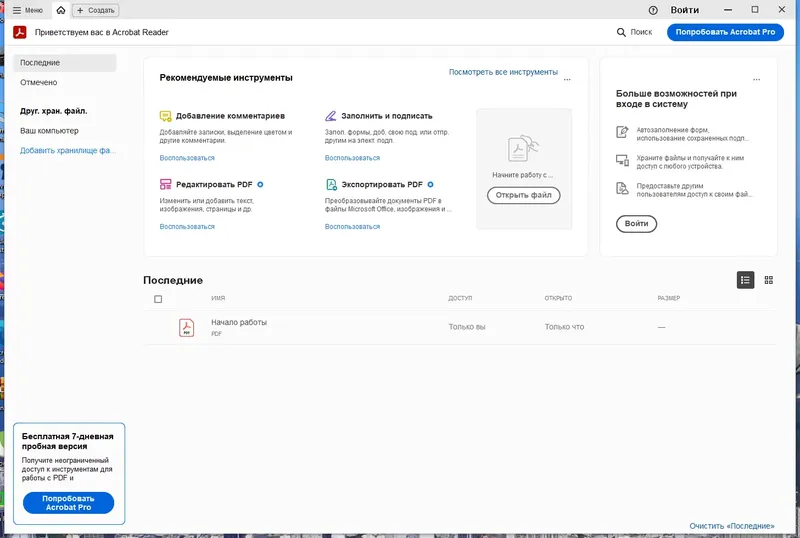 Adobe Acrobat Reader — это универсальный читалка PDF, которая подходит для пользователей, нуждающихся в быстрой и надежной работе с документами. Программа позволяет не только просматривать файлы, но и добавлять комментарии, заполнять формы, подписывать документы электронными подписями. Расширенные функции, такие как преобразование PDF в Word или Excel, делают Adobe Acrobat Reader DC мощным инструментом для деловых и личных целей. Возможность синхронизации с облаком обеспечивает доступ к файлам с любого устройства и в любой точке мира, что значительно повышает продуктивность работы с документами.