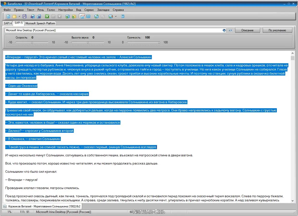 Balabolka — это универсальный читалка, предназначенная для преобразования текста в речь. Она поддерживает множество форматов файлов, включая PDF, DOCX, EPUB и MOBI, а также позволяет воспроизводить текст через любые речевые синтезаторы, установленные на компьютере. Благодаря встроенной поддержке нейросетей озвучки, программа обеспечивает максимально естественное звучание голосов и возможность выбора различных тембров и скоростей. Это делает ее идеальным инструментом для создания аудиокниг, озвучки презентаций и автоматических голосовых сообщений.