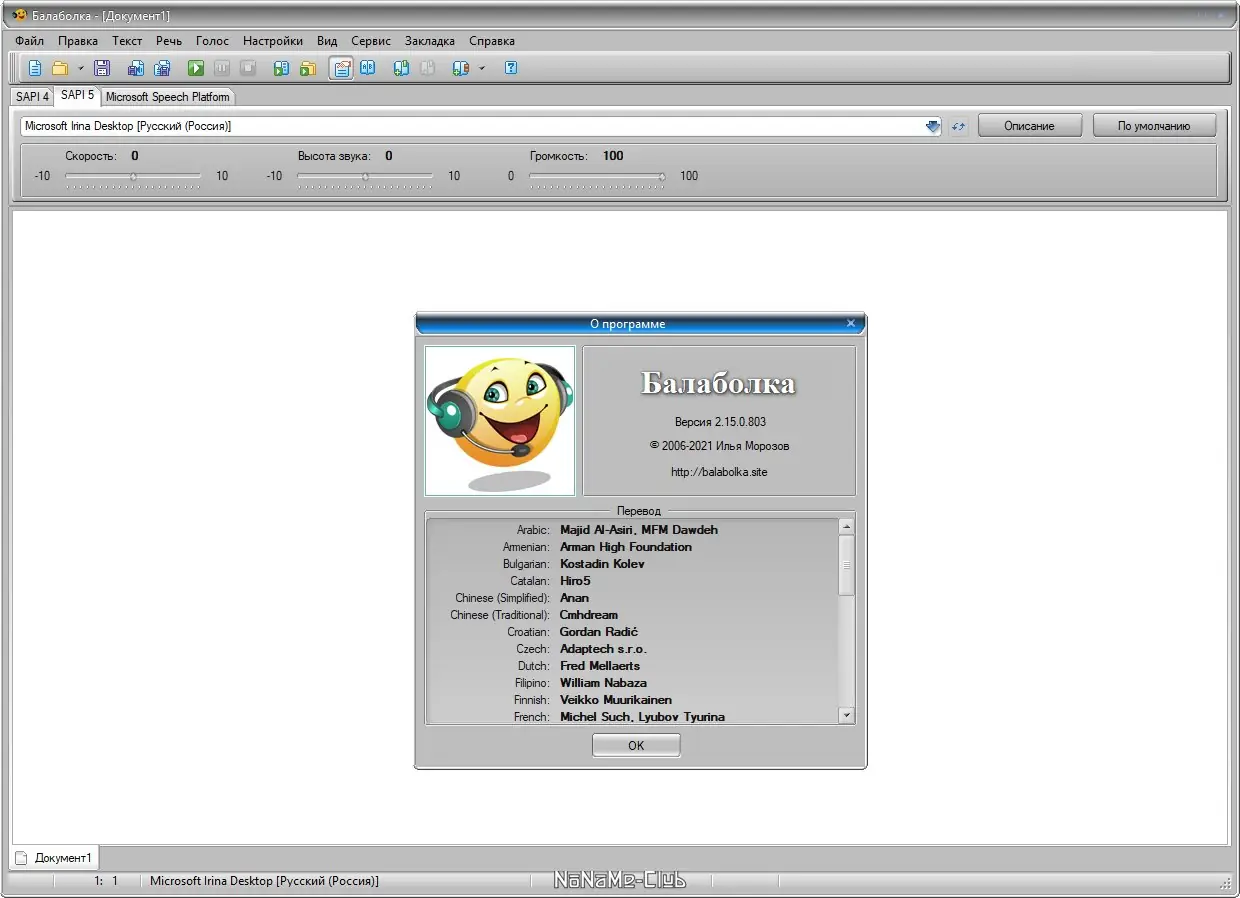 Balabolka — это мощная программа для чтения вслух текстовых файлов с возможностью использования различных голосов и синтезаторов речи. Она подходит для создания озвучки, аудиокниг и автоматизированных систем поддержки. Благодаря нейросетевым технологиям и поддержке онлайн-сервисов, программа обеспечивает естественное звучание и высокое качество озвучки на русском и других языках. Balabolka совместима с Windows и позволяет скачать её бесплатно для удобного использования.
