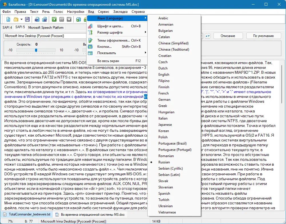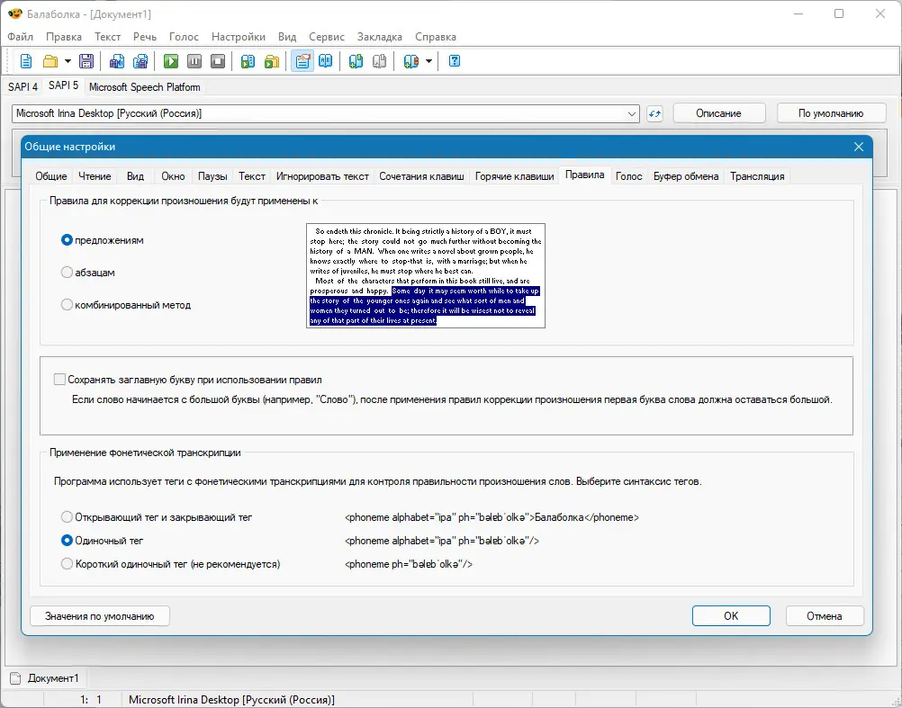 Balabolka — это мощная программа для чтения текстов вслух с возможностью озвучки различных форматов файлов. Она отлично подойдет для тех, кто хочет прослушивать книги, документы или статьи в удобном формате. Благодаря использованию современных технологий, включая нейросети, программа обеспечивает высокое качество озвучки и широкие возможности настройки голоса и параметров воспроизведения.