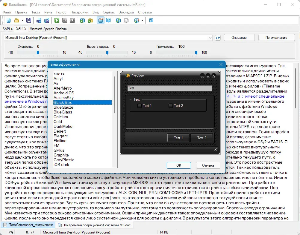 Balabolka — это удобное решение для тех, кто ищет качественную читалку с расширенными возможностями. Она отлично подходит для прослушивания документов, а также для создания аудиокниг и озвучки текстов с помощью нейросетевых голосов. Программа обладает широкими настройками и поддержкой различных форматов, что делает её универсальным инструментом. Однако, несмотря на множество преимуществ, некоторые пользователи могут столкнуться с необходимостью установки дополнительных голосов или синтезаторов для полноценной работы.