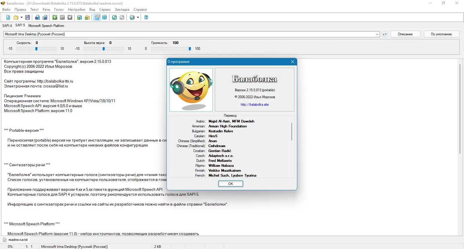 Описание Balabolka