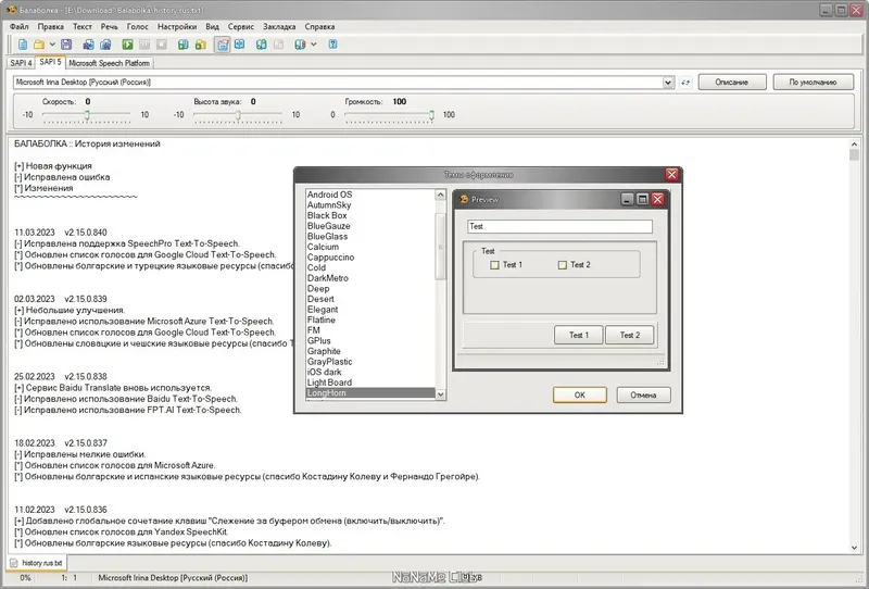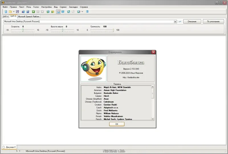 - Поддержка онлайн-голосов и различных версий пакета SAPI.