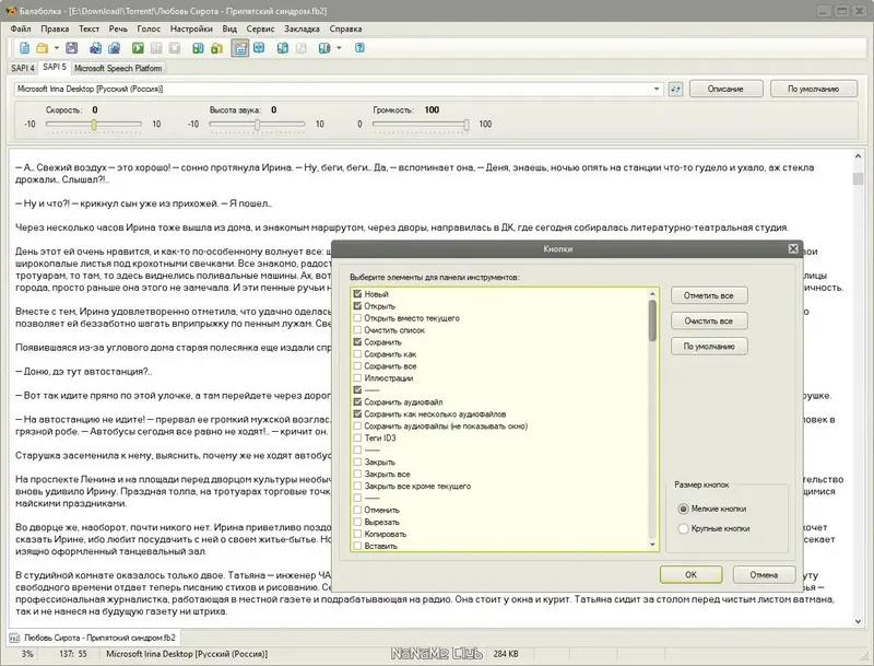 - Интеграция с голосовыми движками Microsoft Speech API (SAPI), а также поддержка современных нейросетевых голосов для более естественной озвучки.