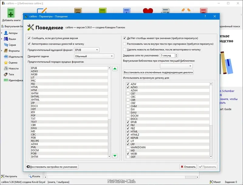 Calibre — это универсальный софт, объединяющий инструменты для организации, преобразования и чтения электронных книг. Он позволяет легко управлять большой библиотекой, добавлять метаданные, искать обложки и автоматически обновлять информацию о книгах. Программа поддерживает многочисленные форматы, такие как EPUB, MOBI, PDF, FB2 и многие другие, что делает её незаменимой для владельцев различных устройств для чтения. Кроме того, Calibre обладает функциями синхронизации с ридерами и возможностью скачивания новостей для чтения офлайн. Встроенный просмотрщик позволяет читать книги прямо в приложении, а встроенный веб-сервер — управлять библиотекой дистанционно.