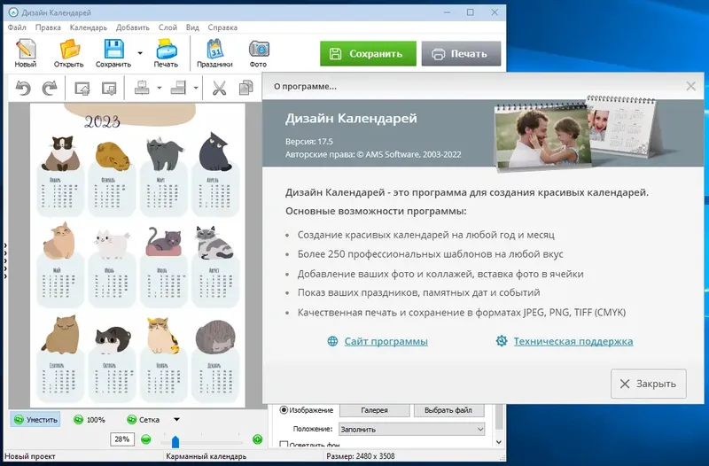 Дизайн Календарей — это программа, которая позволяет создавать красивые и оригинальные календари быстро и легко. Благодаря широкому набору шаблонов и настроек, каждый сможет подготовить календарь, идеально подходящий под свои нужды или для бизнеса. Программа доступна для скачивания на странице, где можно получить последнюю версию и ознакомиться с условиями установки и использования.