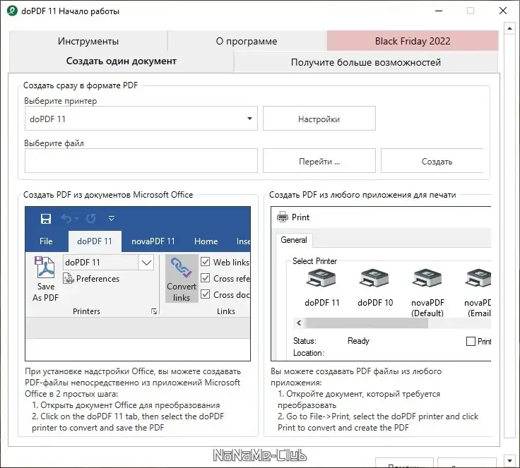doPDF — это мощный редактор и конвертер документов, позволяющий легко создавать PDF-файлы из любых приложений, поддерживающих функцию печати. Он поддерживает работу со многими форматами, включая файлы Microsoft Word, Excel, PowerPoint, а также электронные письма и веб-страницы. После установки программа появляется в списке принтеров Windows, что делает процесс конвертации максимально простым и быстрым. Благодаря своей универсальности и высокой скорости работы, doPDF широко используется в офисных и домашних условиях. Возможность настройки разрешения и размера страницы позволяет создавать профессиональные PDF-документы высокого качества.