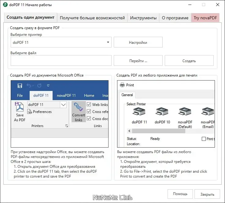 doPDF — это удобная программа для быстрого и качественного преобразования документов в формат PDF. Она поддерживает работу с различными файлами, такими как документы Word, Excel, PowerPoint, электронные письма и веб-страницы. После установки в системе появляется виртуальный принтер, через который можно легко конвертировать любые файлы в PDF, отправляя их на печать. Это решение идеально подходит для пользователей, которым нужно скачать и использовать бесплатный PDF-конвертер на русском языке для Windows 7, 10 или 11.