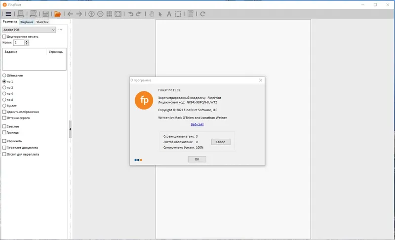 FinePrint — это мощный драйвер для принтеров, который значительно расширяет функциональность стандартных устройств. Он позволяет осуществлять предпросмотр документов, печатать несколько страниц на одном листе, создавать брошюры и фирменные бланки, а также добавлять водяные знаки и заголовки. Программа совместима со всеми моделями принтеров и работает как универсальный инструмент для оптимизации процесса печати, позволяя экономить бумагу и чернила, а также повышая качество и удобство работы с документами.