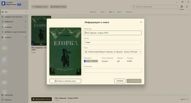 IceCream Ebook Reader — это универсальная программа для чтения электронных книг на компьютере. Она отличается высокой скоростью работы, поддержкой множества форматов и удобным управлением библиотекой. Встроенные инструменты позволяют делать заметки, переводить фрагменты текста и использовать закладки для быстрого доступа к важным разделам. Благодаря режиму полного экрана и ночному режиму чтения, пользователь получает максимально комфортные условия для погружения в книгу. Эта читалка подходит как для домашнего использования, так и для профессиональной работы с большими коллекциями литературы.