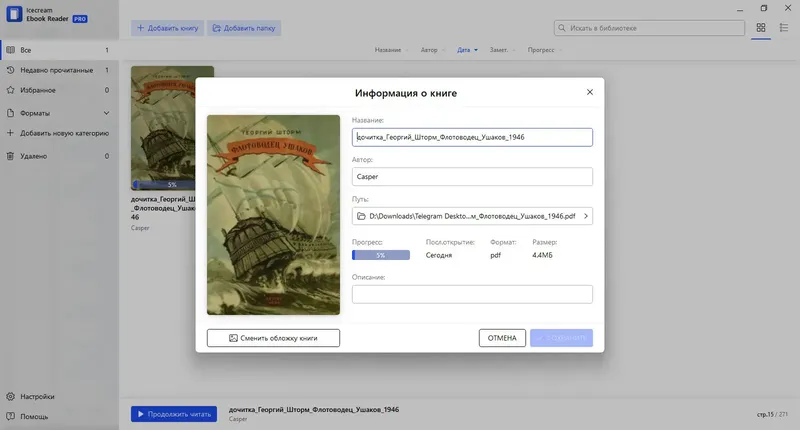 IceCream Ebook Reader — это современная читалка для ПК, которая превращает ваш компьютер в удобное устройство для чтения электронных книг. Программа поддерживает популярные форматы, такие как ePub, MOBI, FB2, CBR и другие, что делает ее универсальным решением для любителей чтения. Простое управление, возможность делать заметки и переводить текст позволяют максимально комфортно просматривать и организовывать цифровую библиотеку прямо на рабочем столе. Скачать IceCream Ebook Reader бесплатно можно на официальной странице, чтобы начать наслаждаться чтением уже сегодня.