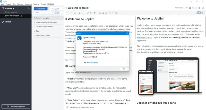 Joplin представляет собой универсальный редактор заметок, который позволяет структурировать информацию в блокнотах и тегах для быстрого поиска и организации. Программа поддерживает синхронизацию с облачными сервисами, такими как Dropbox, Nextcloud, OneDrive и WebDAV, что обеспечивает доступ к заметкам с любого устройства. Благодаря открытому исходному коду, приложение постоянно развивается и адаптируется под потребности пользователей. В состав входит возможность работы с заметками в формате Markdown, что делает его популярным среди разработчиков и тех, кто ценит простоту и эффективность.