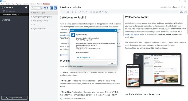 Для начала работы с Joplin необходимо скачать и установить приложение на выбранную платформу. После запуска можно создавать новые заметки, организовывать их в блокноты и добавлять теги для быстрого поиска. Импорт заметок из Evernote или других файлов Markdown осуществляется через встроенные функции, что позволяет быстро перенести всю важную информацию. В настройках можно подключить синхронизацию с облачными сервисами, такими как Dropbox или Nextcloud, чтобы обеспечить доступ к заметкам с любого устройства. В интерфейсе программы легко ориентироваться благодаря интуитивно понятной навигации и единообразному дизайну, что делает использование максимально комфортным и эффективным.